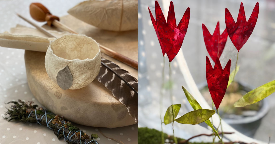 Ich liebe es mit einfachen Materialien wie Zeitung, Draht, Naturmaterialien, Kleister und schönen Papieren meiner Fantasie Gestalt zu geben.
